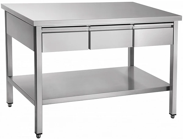 Стол с тумбой навесной Abat СТН-7-1 предназначен для использования на предприятиях общественного питания в качестве вспомогательного оборудования и для хранения небольшой кухонной утвари (ложки, вилки, ножи и т.д.) или продуктов питания в упаковке (кофе, крупы, макаронные изделия, приправы).