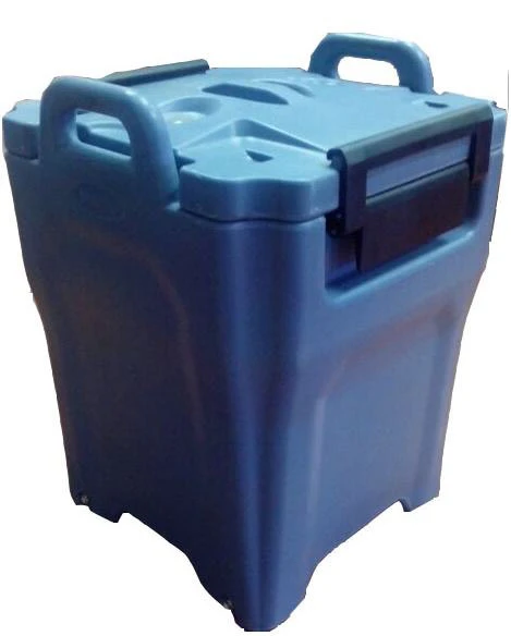 Термоконтейнер с верхней загрузкой для супов и напитков объемом 35 л имеет цельнолитую двухслойную конструкцию из пищевого полиэтилена толщиной 3 мм с инжекцией пенополиуретана высокой плотности.