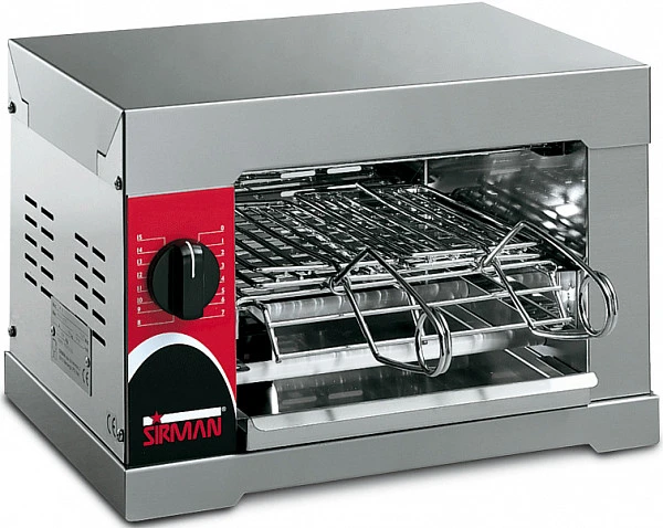 Тостер профессиональный Sirman 4Q идеально подходит для подогрева пиццы, бутербродов и полуфабрикатов, а также для приготовления гамбургеров, сосисок, тостов с начинкой и пресных лепешек "пьядина".