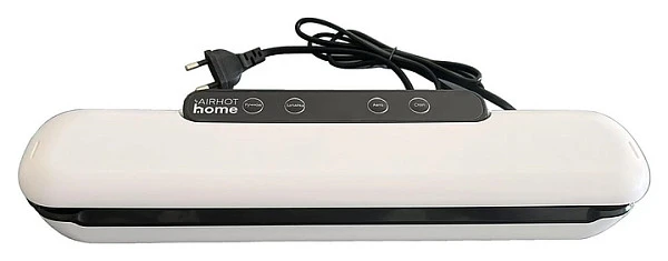 Вакуумный упаковщик AIRHOT HOME SV2 используется на малых предприятиях промышленности, общественного питания и торговли, а также в домашних условиях для упаковки гастрономических продуктов, фотографий, документов, медикаментов, косметики, мелких деталей и других предметов в герметичную тару для сохранения свежести, предотвращения размножения микроорганизмов и смешивания запахов. Модель оснащена выкуумным насосом, кабелем питания с вилкой, откидной крышкой с запаечной пластиной и панелью управления с нажимными функцинальными клавишами и цифровым дисплеем с синей подсветкой индикации. Корпус обтекаемой формы выполнен из ударопрочного пластика белого цвета, прижимная планка – из термостойкой силиконовой ленты.