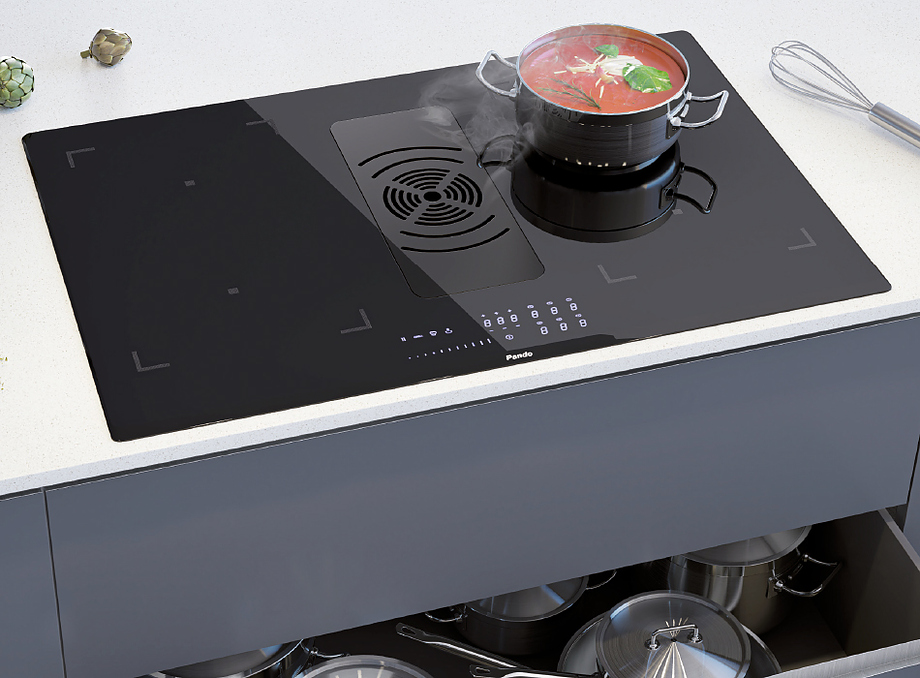 Вытяжка V.1130 ECO PLUS с плавной интеграцией лицевой панели в центральную часть рабочей поверхности