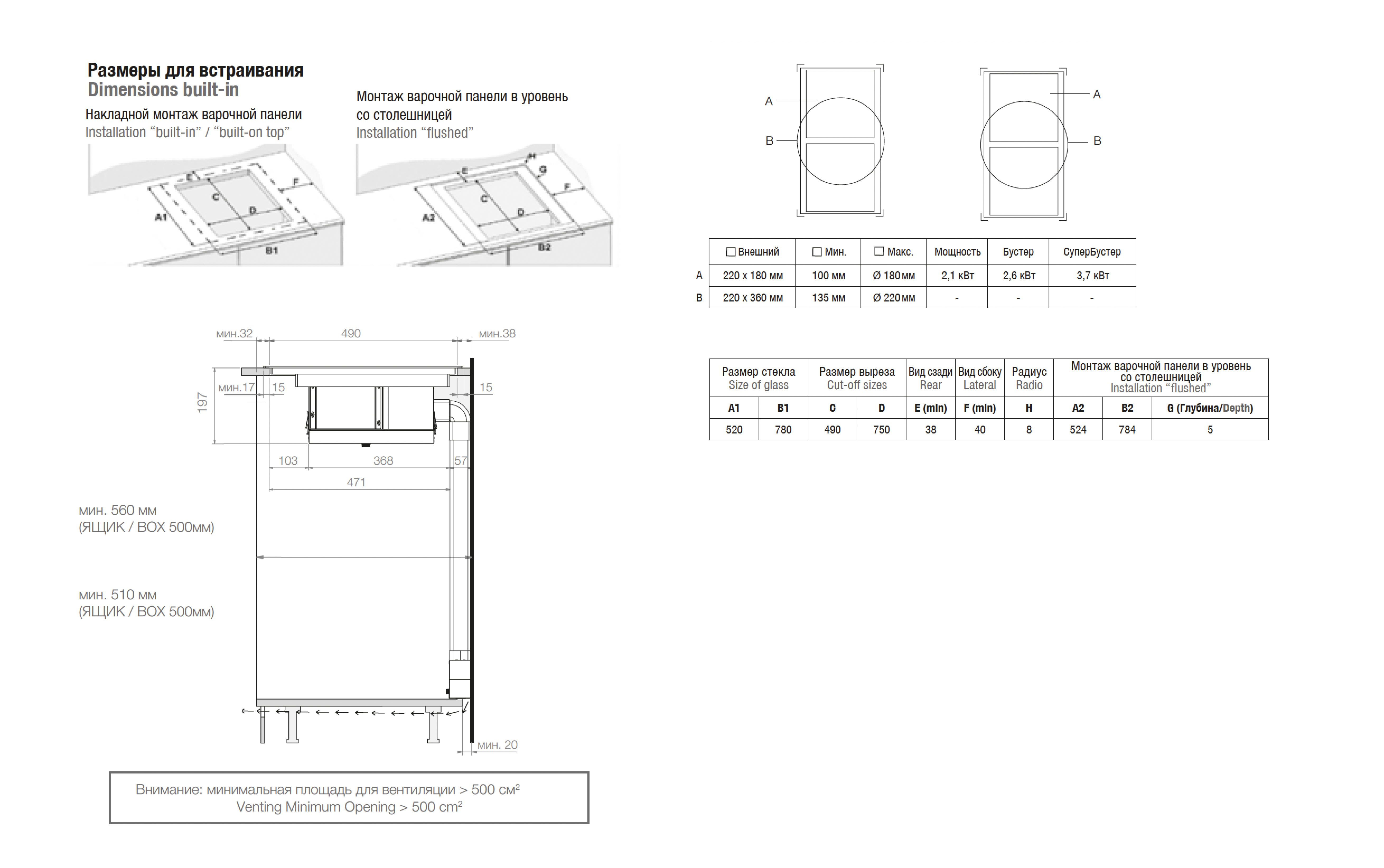 Максимальная мощность независимых варочных зон (в режиме Booster / SuperBooster): 2,1 (2,6 /3,7) кВт