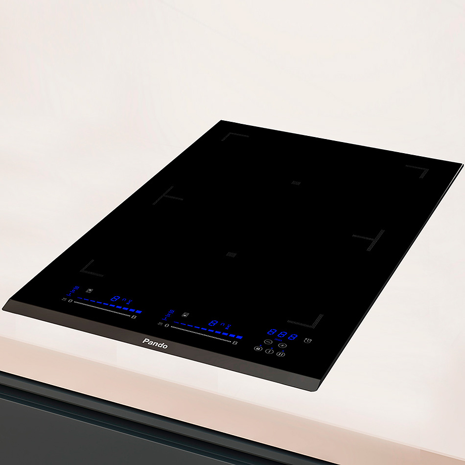 Варочная поверхность индукционная Pando PI-DOM предназначена для приготовления большого ассортимента блюд в домашних условиях. Принцип работы основан на непосредственном нагреве металлической посуды создаваемыми высокочастотным магнитным полем индуцированными вихревыми токами. Модель оснащена 2 варочными зонами, кабелем питания, сенсорной панелью управления и светодиодными дисплеями с голубой подсветкой индикации. Рабочая поверхность выполнена из высококачественной стеклокерамики Keraspectrum черного цвета со скошенной фронтальной кромкой.