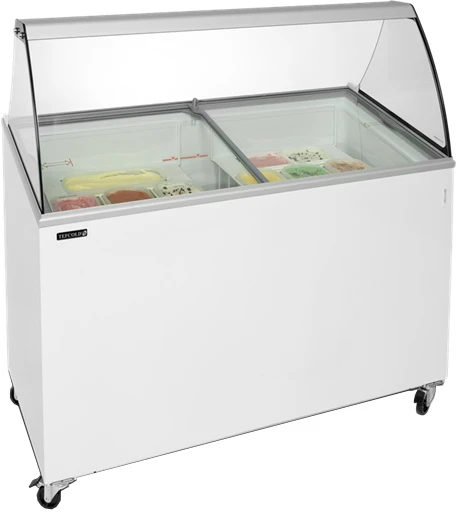 Витрина для мороженого Tefcold IC400SCE-SO используется на предприятиях общественного питания и торговли для демонстрации и хранения мороженого, сорбета и йогурта-мороженого.